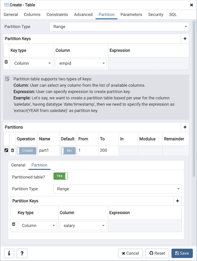 Added support for a multi-level partitioned table.
