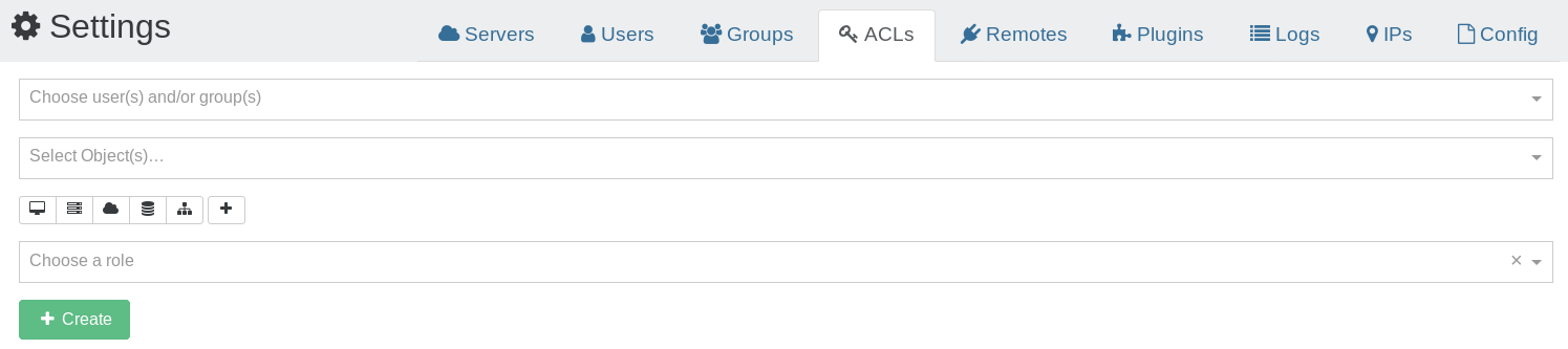 ACLs are the permissions for your users or groups. The ACLs view can be accessed in the "Settings" panel.