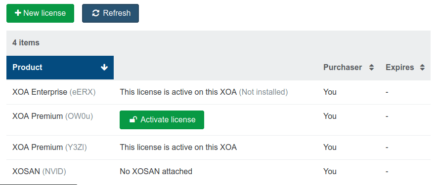 After the purchase, all your available licenses will be visible in the license section of your appliance.